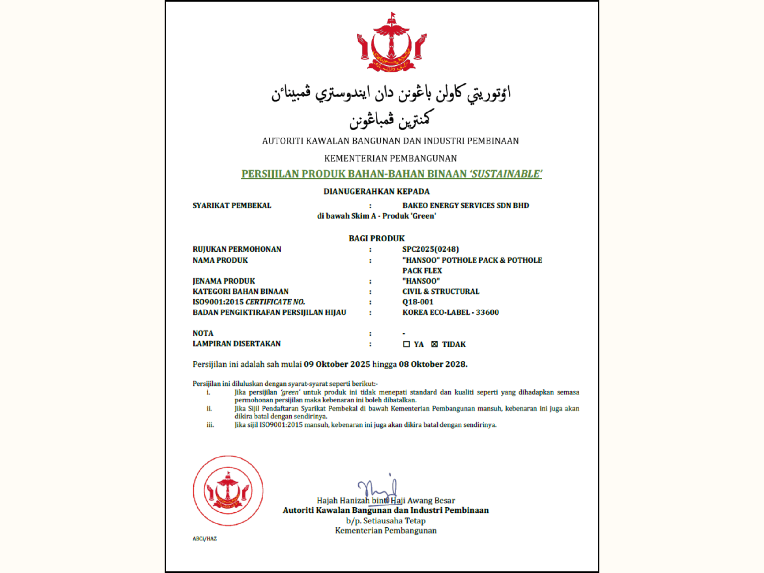 ABCi (Authority for Building Control and Construction Industry) Approved Certification. Ministry of Development Brunei Darussalam